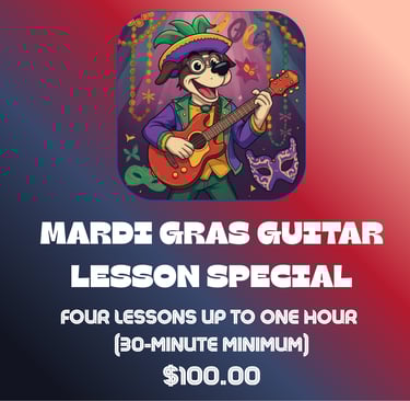 However, if you want to learn not just to play the guitar but to become a skilled guitar player at a unique, professional music school, let's talk. I would love to have you sign on with me and guide you through your musical journey, wherever you want it to take you. You won't be sorry.
